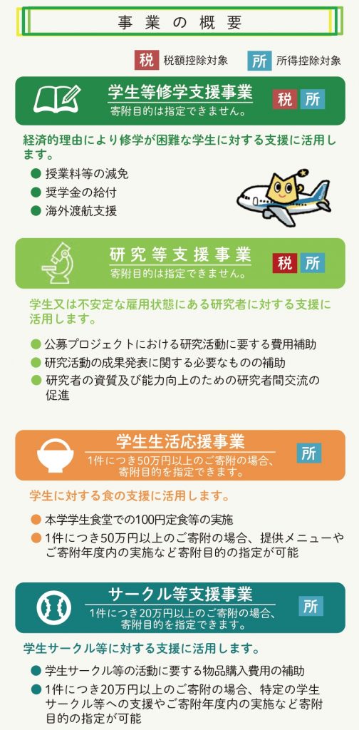 本申込に記載された住所、電話、氏名及び寄附金額の個人情報は、領収書発行その他の寄附金受入れに関する業務にのみ使用し、他の目的には使用しません。