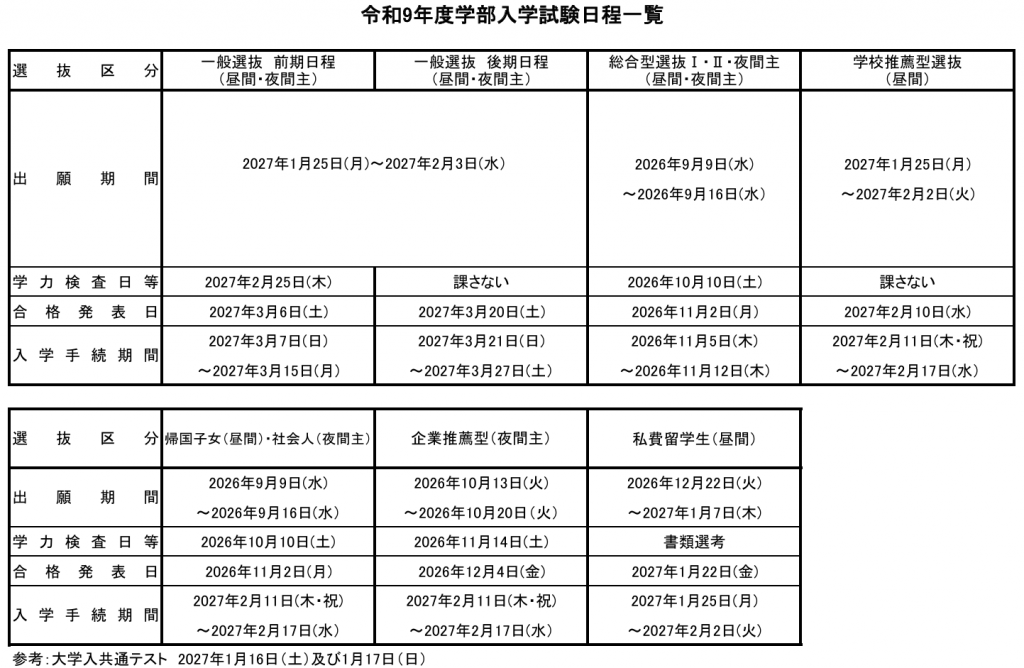 ※入学試験等の日程は予定です。必ず募集要項により確認してください。