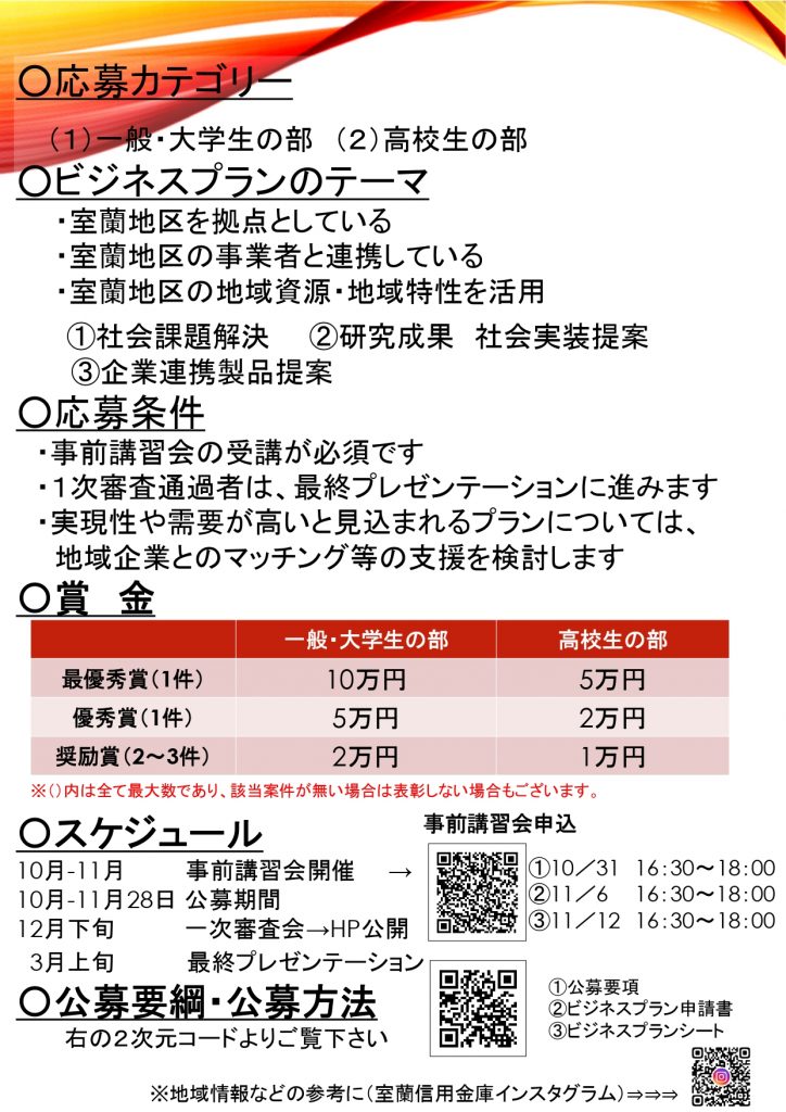 対 象 者:室蘭・登別・白老地区の大学・専門学校・高校・中学の在籍学生、または同地区に在住・勤務している方(グループでの参加も可能)