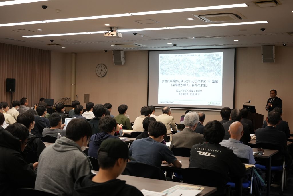 令和7年10月23日(木)に本学本部棟大会議室において、道民向けセミナー「次世代半導体とほっかいどうの未来 in 室蘭」(主催:北海道経済部AI・DX推進局 次世代半導体戦略室)が開催され、一般の方や本学関係者含む約130名(オンライン含む)が参加しました。