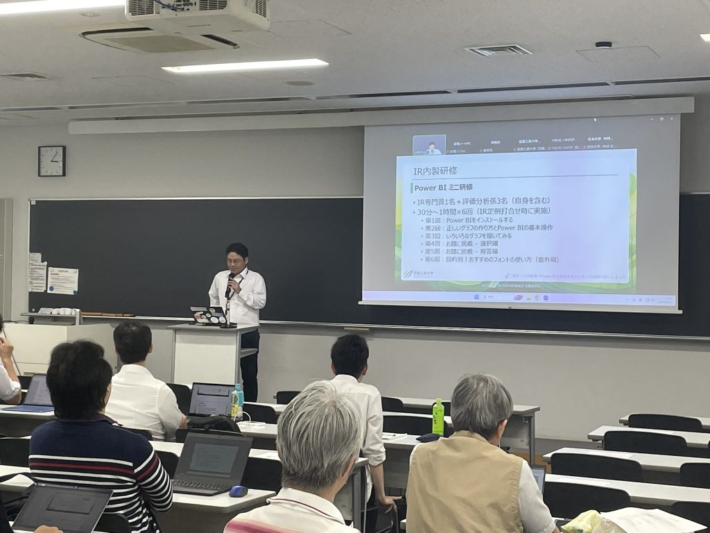 本学からは、田嶋係長が「生成AI活用促進とGOOD ACTIONシェアリング」、白川部係長が「IR基盤整備とIR担当者による研修内製化」をテーマに発表を行いました。発表後の情報交換会では、参加者間で活発な意見交換が行われ、大変有意義な時間となりました。