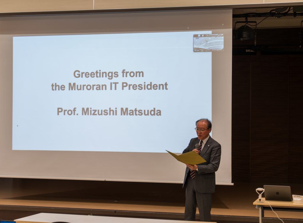 開会にあたり、松田学長より挨拶があり、午前のプログラムでは董冕雄副学長が基調講演のセッションチェアを務めました。