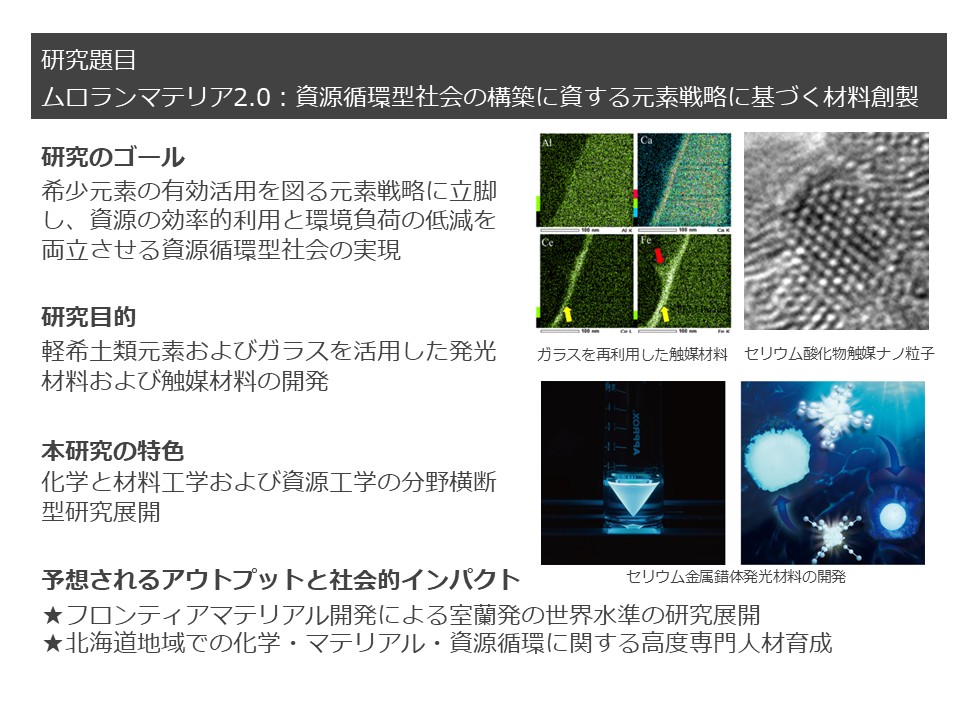 中期計画:【9-1】:「北海道 MONO づくりビジョン 2060」で掲げた「産業」の価値、「地域」・「生活」の価値等を向上させる持続可能で豊かな社会を実現するための科学技術開発を推進するクリエイティブコラボレーションセンターでの研究(新たなラボの創出提案も含む)の推進(成果例として査読付き論文数と外部資金獲得額の総合指標値を増加させる研究の推進)