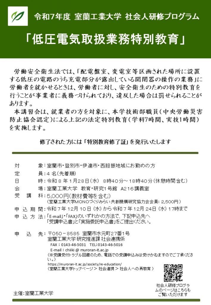 低圧電気取扱業務特別教育 令和8年1月28日(水)8:40~18:40(休憩時間を含む)