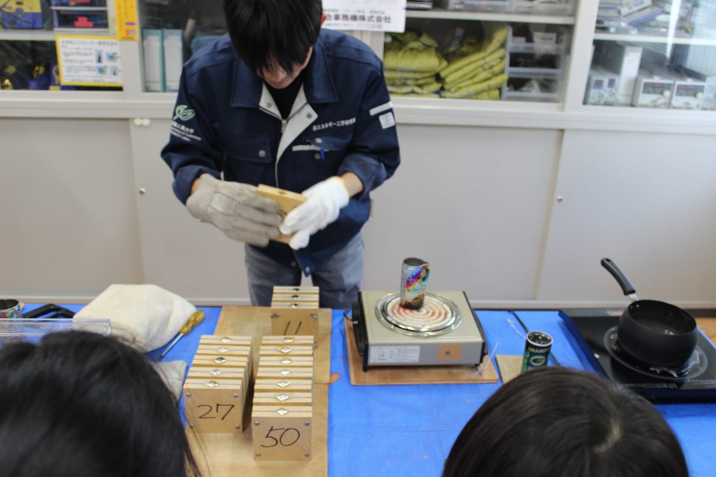 一行は、本学ものづくり基盤センターにおいて、ものづくり技術についての説明を受けた後、教員やセンターのスタッフの指導のもと、鋳造技術を用いたキーホルダーを作成しました。室蘭工業大学が誇るものづくりについて、短い時間でしたが、一生懸命勉強されていました。
