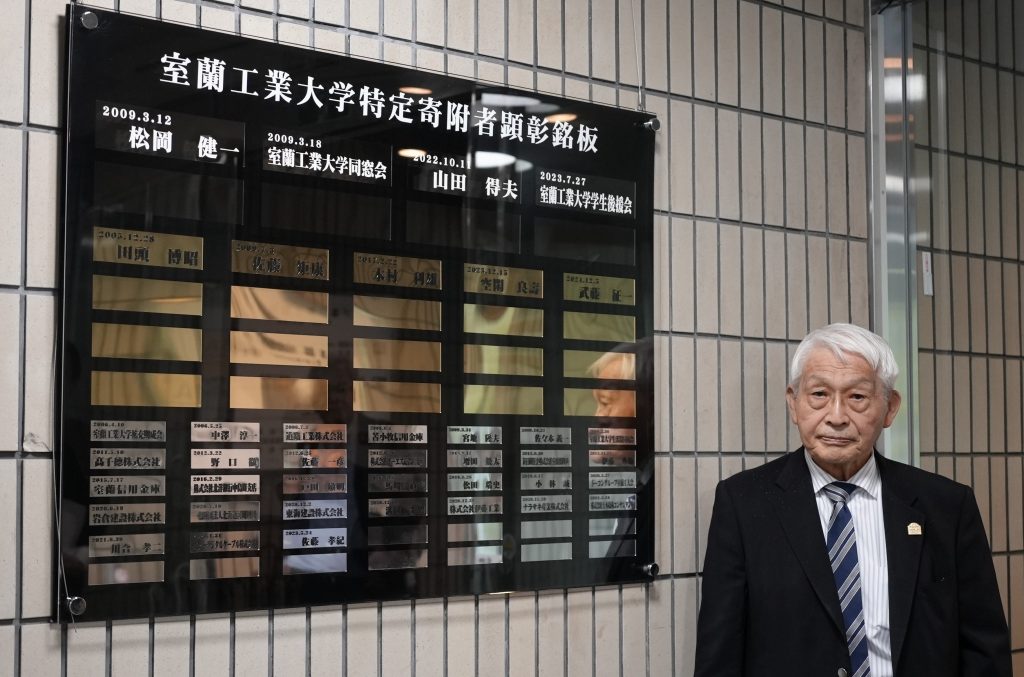 感謝状贈呈式では、松田学長より感謝状が手渡され、贈呈式の後には、本部棟1階に設置されている銘板のお披露目会が行われました。