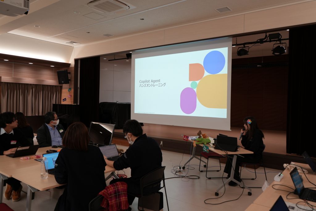 また、翌3月19日(木)の午前中には、事務職員および技術職員を対象としたMicrosoft 365 Copilot エージェントワークショップを開催しました。本ワークショップでは、有償版Microsoft 365 Copilotの機能の一つであるエージェントビルダーを用いて、業務に役立つエージェントを実際に作成する実践的な内容が行われました。参加者は操作を体験しながら、業務への応用方法を学び、成果を共有しました。
