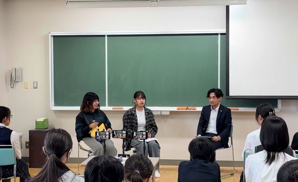 令和7年9月20日(土)に、北海道庁と共催で、札幌日本大学中学校・高等学校において、リケジョのキャリアスタートアップ「見て、聞いて、作って知る!理系の未来と私の可能性」を開催しました。本学からは、第1部の理系のリアル進路トークタイムで、花島副学長による「社会で求められるリケジョの現状」に関する講演と、「リケジョが語る、キャンパスライフの本音」と題した対談にて花島副学長と博士後期課程1年の小笠原日向子さん、学部3年の松浦奈那実さんが登壇し、女子中高生27名のほか、保護者や北海道議会議員などが参加しました。参加者からは、「親も一緒に話を聞くことで、将来の進路について家庭内で導ける会話ができそう」「学生が楽しそうに生活している様子が伝わった」などの声が寄せられました。