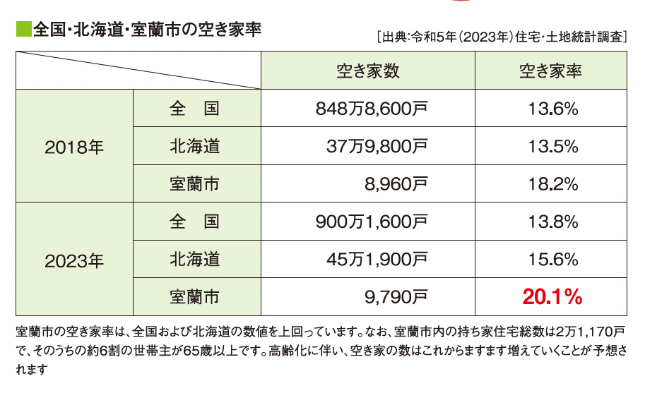 活用の道を模索する動きがある一方で、取り壊すという選択を取る市町村もあります。室蘭市は2016年、北海道初の行政代執行による空き家の解体を行いました。室蘭市の場合は市街地に空き家が密集し、周辺住民への被害が問題となっていました。活用よりもいかに安全に処理するかが重要であったため、解体に踏み切ったのです。