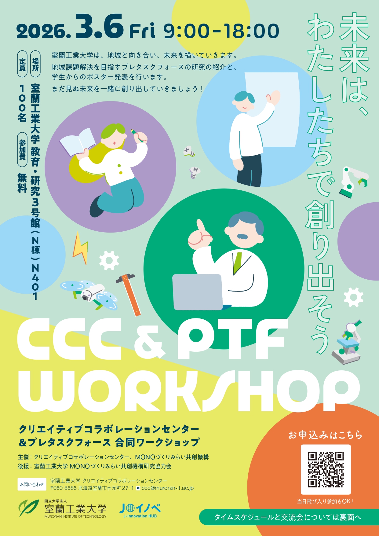 本ワークショップでは地域課題解決を目指すPTFの研究の紹介と学生からのポスター発表を行います。