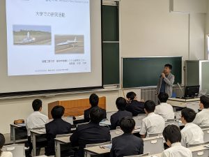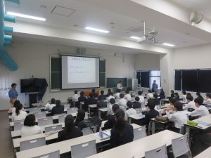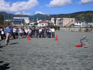 実施日:令和5年9月29日(金) 10:00~13:00場所:教育・研究1号館A棟(A304室)、グラウンド参加者:生徒64名、引率教諭6名